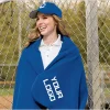 This quality Custom Logo Roll-Up Blanket is perfect for both a sunny day and cold fringed days. Additionally, it will keep you covered and protected. Furthermore, the blanket comes with Attached Matching Carry Flap With Velcro Closure and Pocket. Designed for Screen-Printing and Embroidery.