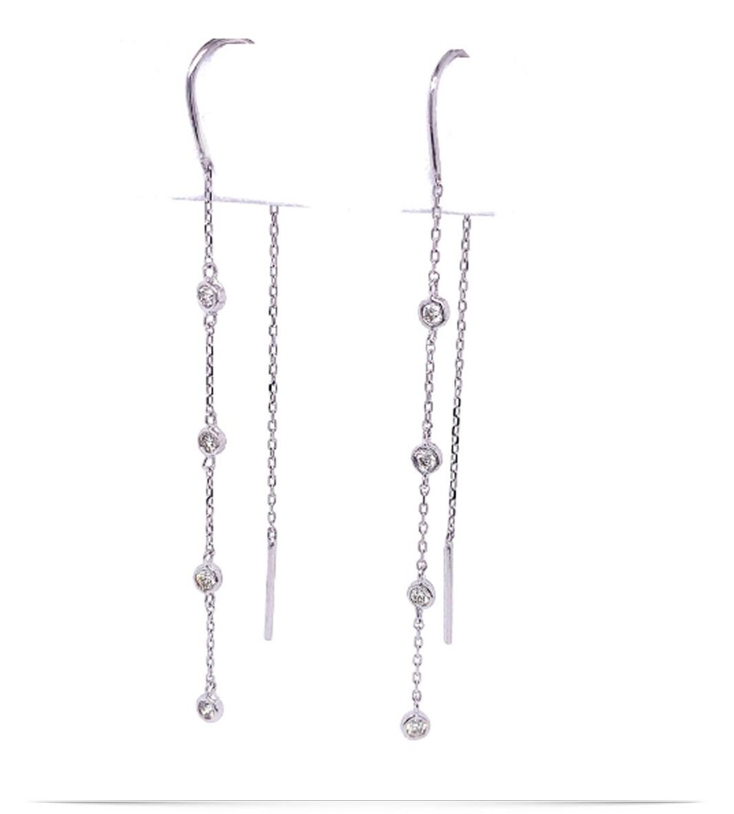 Therefore, when times call for you to make a big entrance, these stunning drop earrings have got you covered! You can wear this on a special occasion or just in your everyday style. Because the mix of gold chains and round diamonds can also improve any outfit.