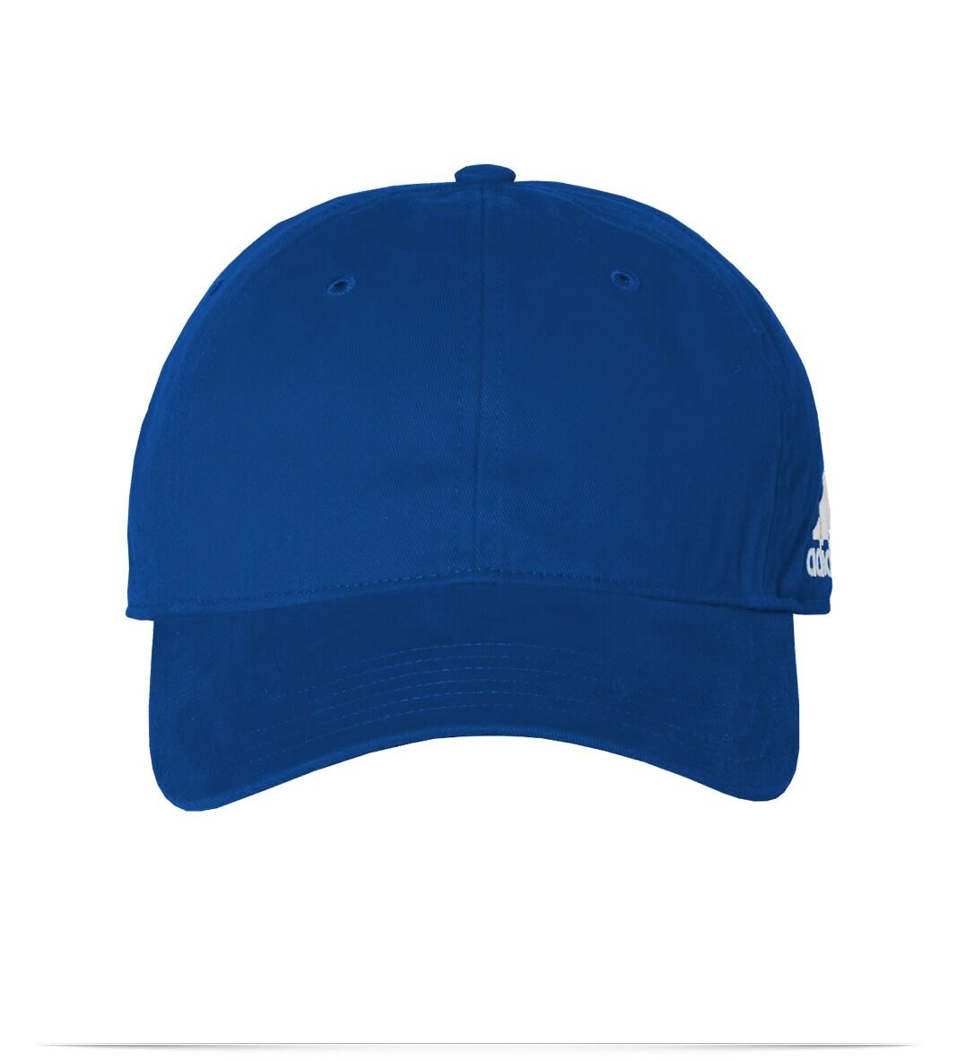 The Adidas Core Performance Relaxed Cap pricing includes your embroidered logo on one location. It comes with 8,000 stitches. Choose up to 6 colors. Additionally, we have a one-time logo set-up fee of $65.00. For more info, please call us at (888) 475-5646.