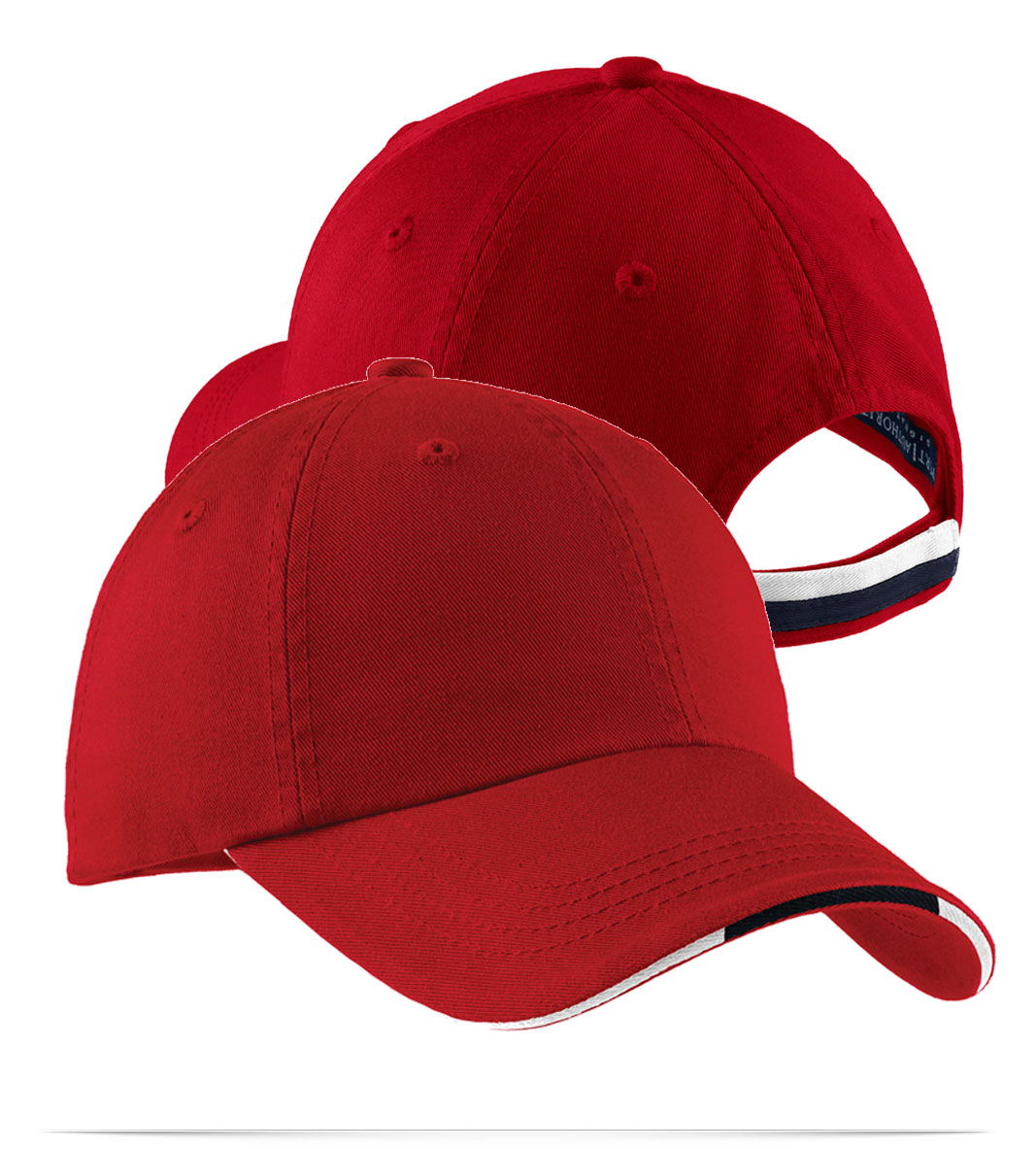 Custom Cap Sandwich Bill with Striped Closure pricing includes, your embroidered logo on one location with 8,000 stitches, your choice of up to 6 colors for a one time logo set-up fee of $65.00. For more info, please call us at (888) 475-5646. So, what are you waiting for? Buy now!