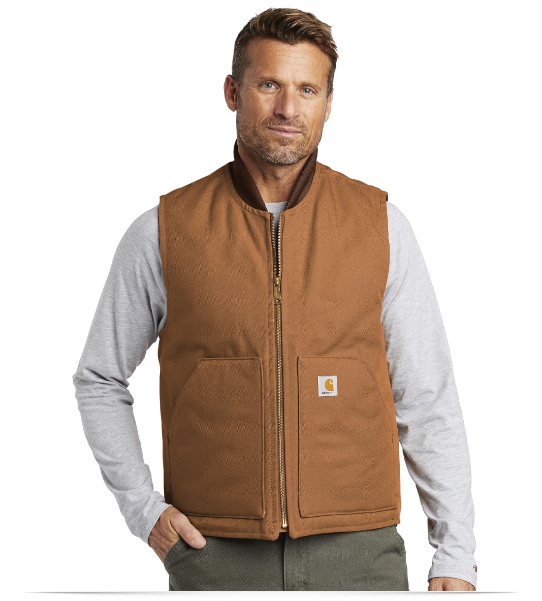 Make a statement with a personalized touch – the customized Carhartt Duck Vest can be customized with a logo or embroidered design. Besides, showcase your brand proudly by opting for a customized vest that reflects your unique identity. Further, the logo vest serves as a blank canvas for your vision, allow you to stand out with a touch of identity.