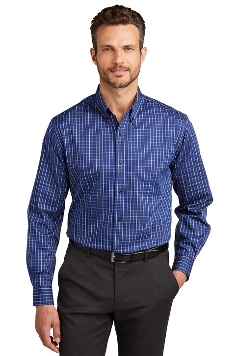 With a classic tattersall pattern, this poplin shirt adds variety to your work apparel. Specially finished for wrinkle resistance, it stays crisp from breakfast meetings to after hour mixers.