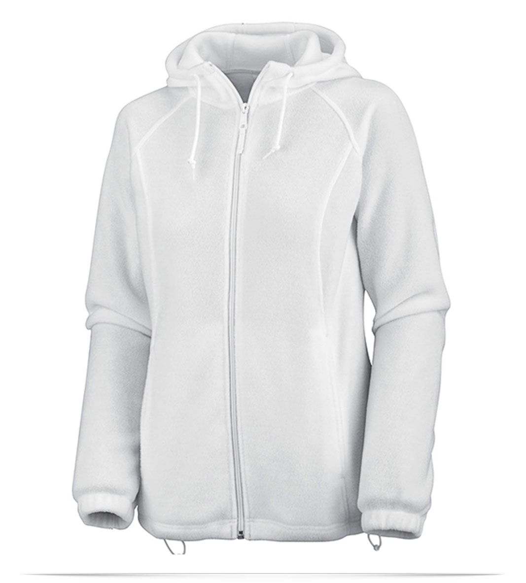 - Full front zip with attached hood
