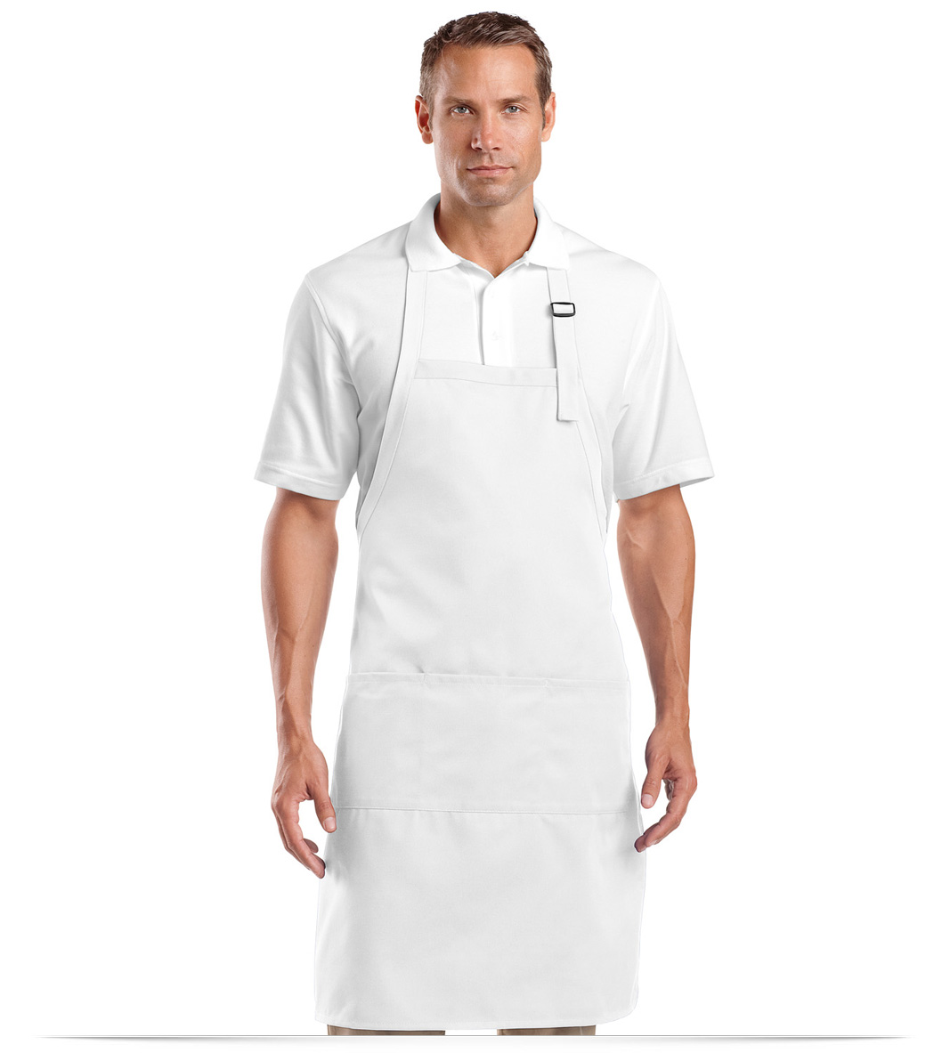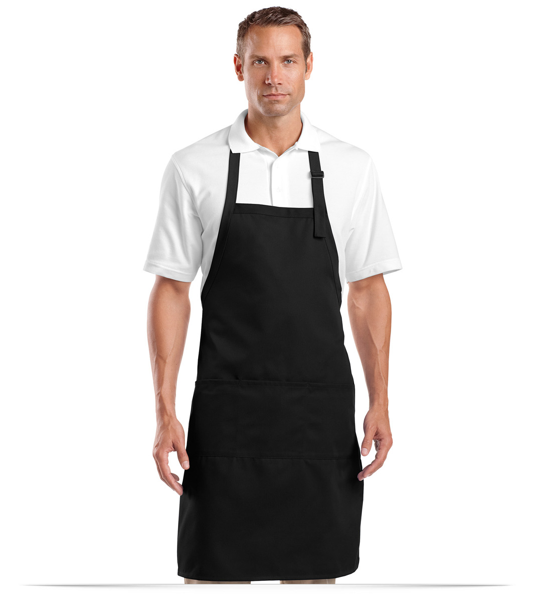 Made from heavyweight 7.5 ounce, 65/35 polyester and cotton twill fabric. You’ll be covered for a long time. The sliding neck adjustment of this generous sized customized Embroidered Bib apron makes for an easy fit, while three patch pockets separate and keep goods handy. Extra long for twice the protection, these aprons measure 25″ W X 34″ L. Choose from 5 great colors.