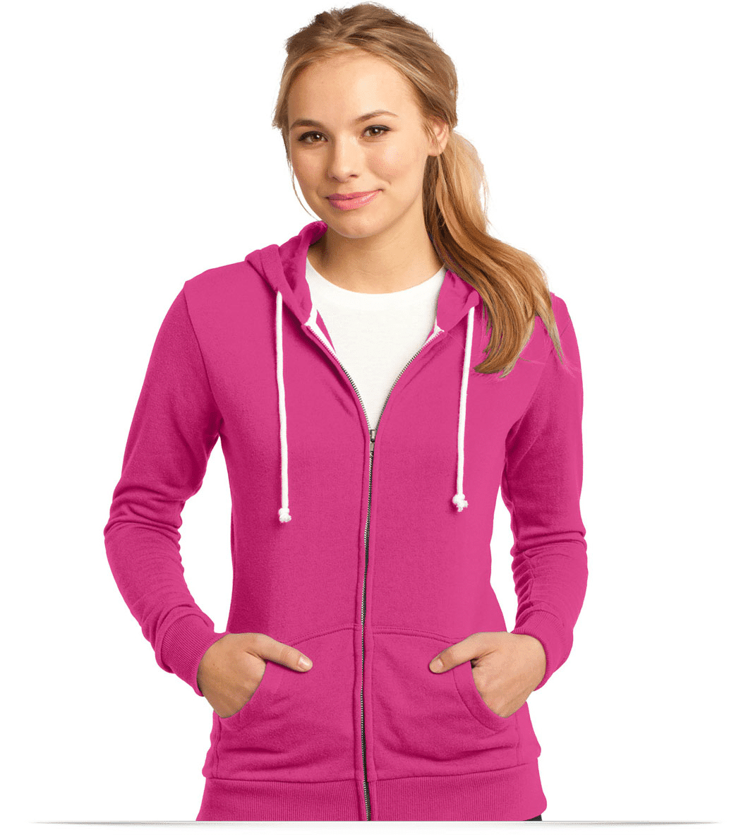Juniors Core Fleece Full-Zip Hoodie pricing includes, your embroidered logo on one location with 8,000 stitches, your choice of up to 6 colors for a one time logo set-up fee of $65.00. For more info, please call us at (888) 475-5646.