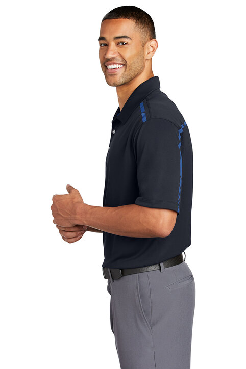 Get noticed. Bold heat transfer graphics on the shoulders and Dri-FIT moisture management technology make this polo a sporty, high performer.