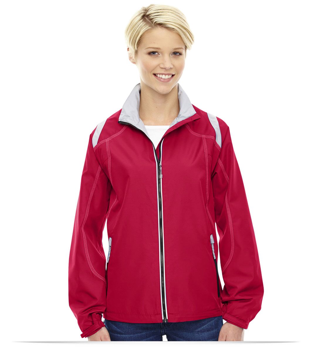 The Custom North End Ladies Lightweight Jacket pricing includes, your embroidered logo on one location with 8,000 stitches, your choice of up to 6 colors for a one time logo set-up fee of $65.00. For more info, please call us at (888) 475-5646. So, what are you waiting for? Buy now!