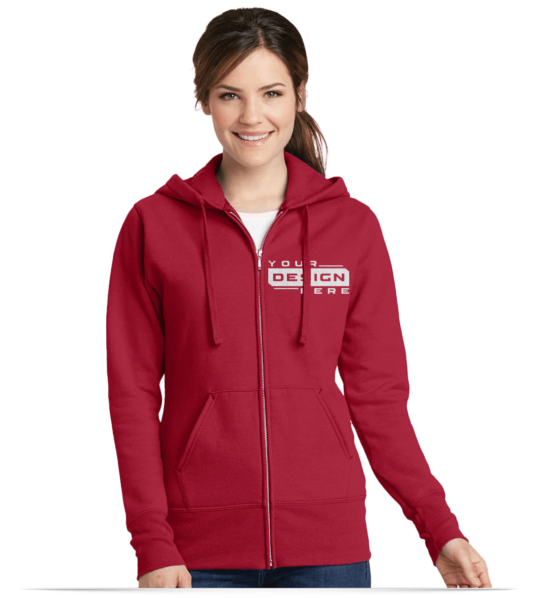 Cozy up in a custom Port and Company Ladies Classic Full-Zip Hoodie!