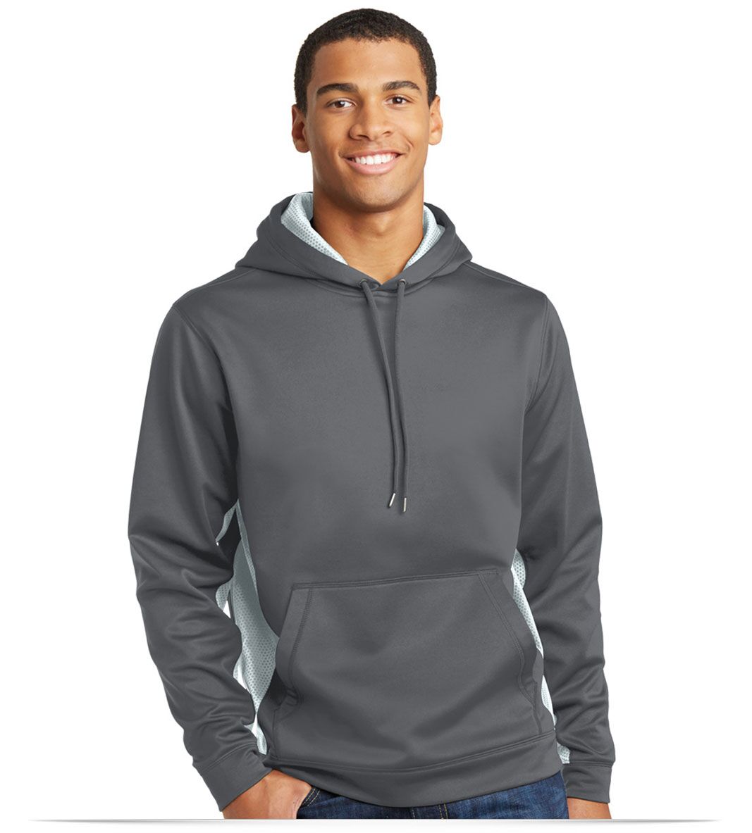 The Fleece Colorblock Hoodie with logo is crafted from 100% polyester fabric. This hoodie is not only anti static but also features Sport-Wick moisture wicking technology. This means it’s ideal for active individuals, keeping you cool and dry during workouts or outdoor adventures.