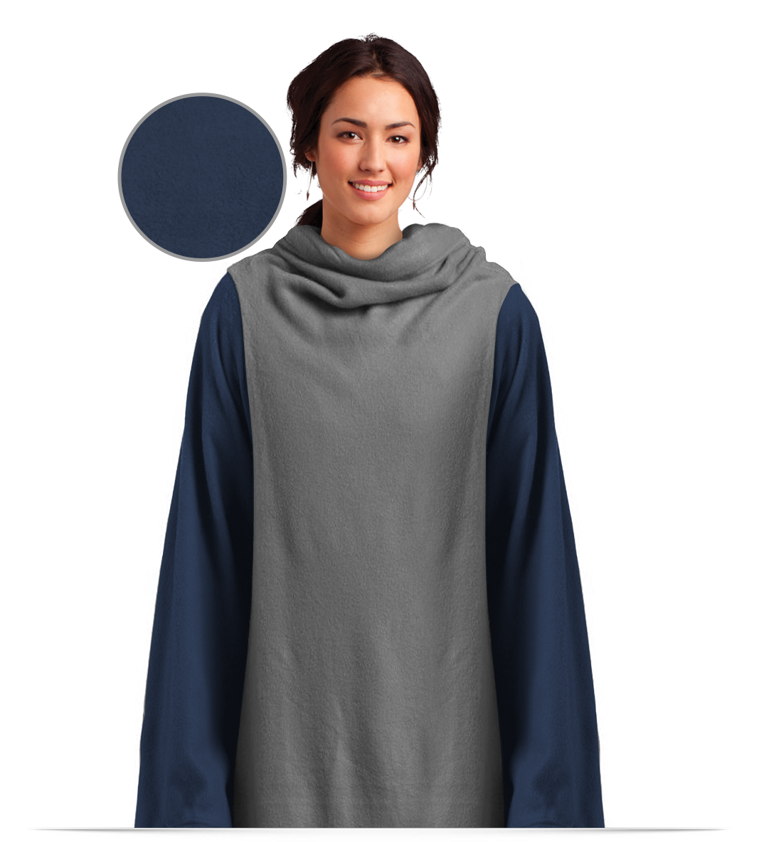 The customized Dylan Two Tone Blanket with Arms with logo keeps your upper body warm while using your hands to work, use technology, or enjoy a snack. As a result, you won’t struggle to keep your blanket in place.