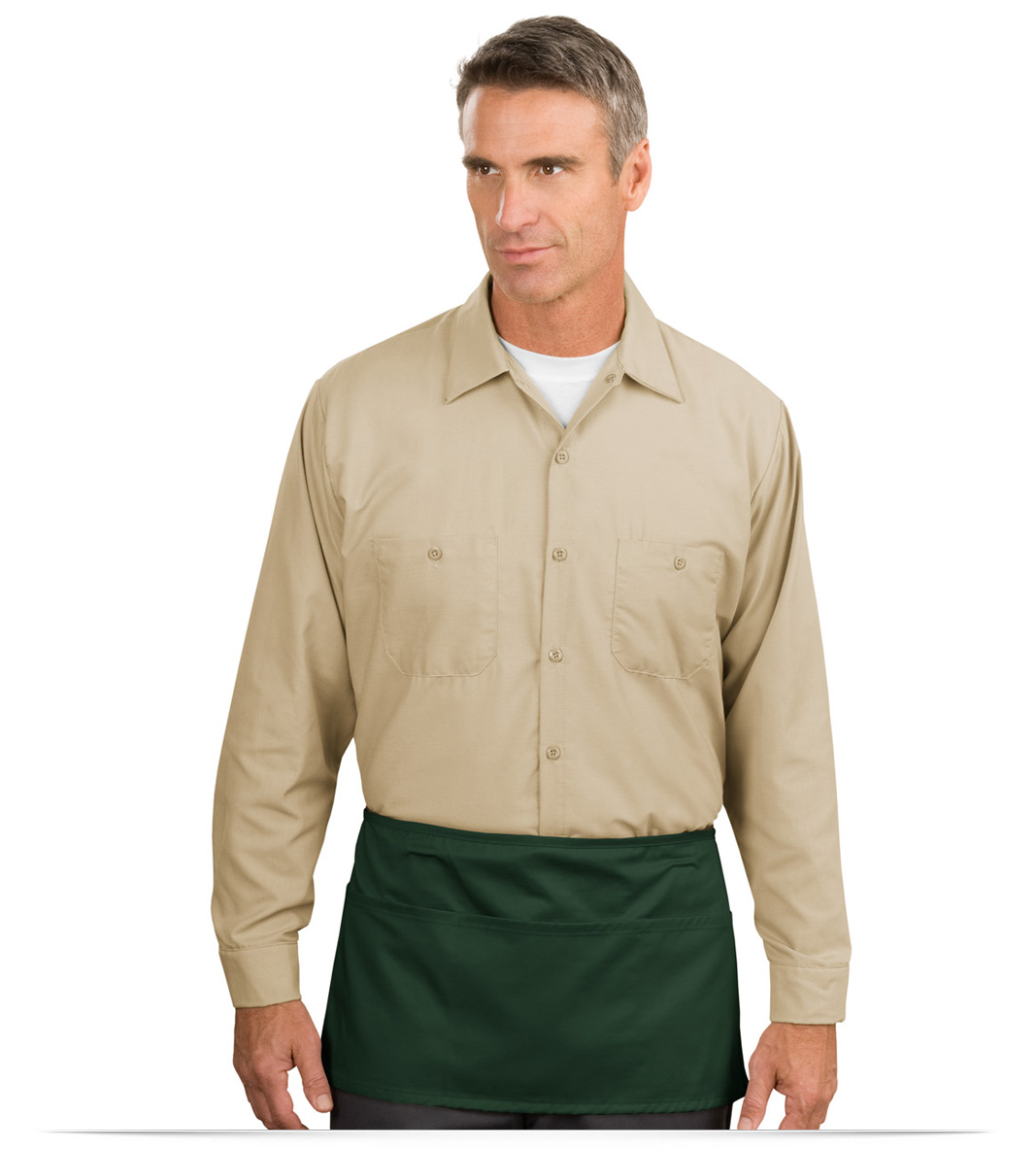 This waist apron with pockets get high marks for superb protection and practicality, stains don’t stand a chance. It provides plenty of storage space when hands need to be free for food preparation or serving. A great value, this apron comes in 5 fashionable colors.