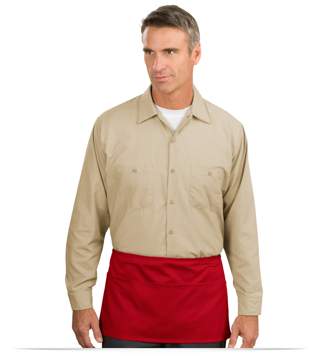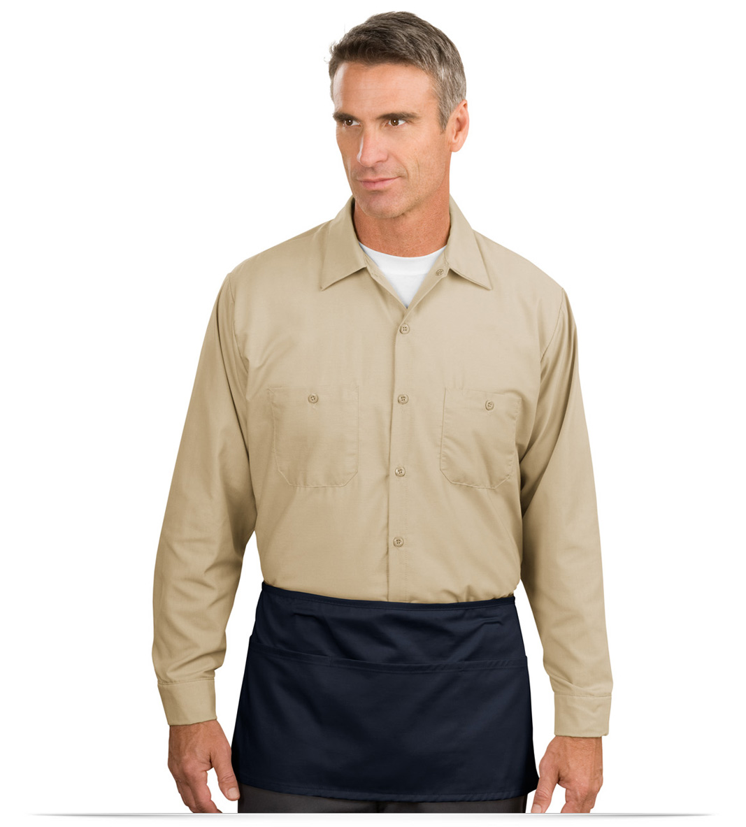 Custom Waist Apron with Pockets pricing includes your embroidered logo on one location. It comes with 8,000 stitches, your choice of up to 6 colors, for a one-time logo set-up fee of $65.00. For more info, please call us at (888) 475-5646.