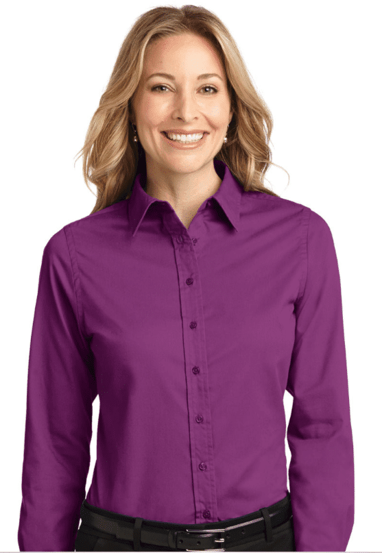 Custom Women’s Long Sleeve Easy Care Twill Shirt from AllStar Logo keeps looking great after every wash. Additionally, It’s made of 55/45 cotton and polyester and weighs 4.5 ounces. It’s a basic shirt without all the fuss. The light, smooth cloth doesn’t wrinkle, keeps its colour, and doesn’t shrink when you wash it.