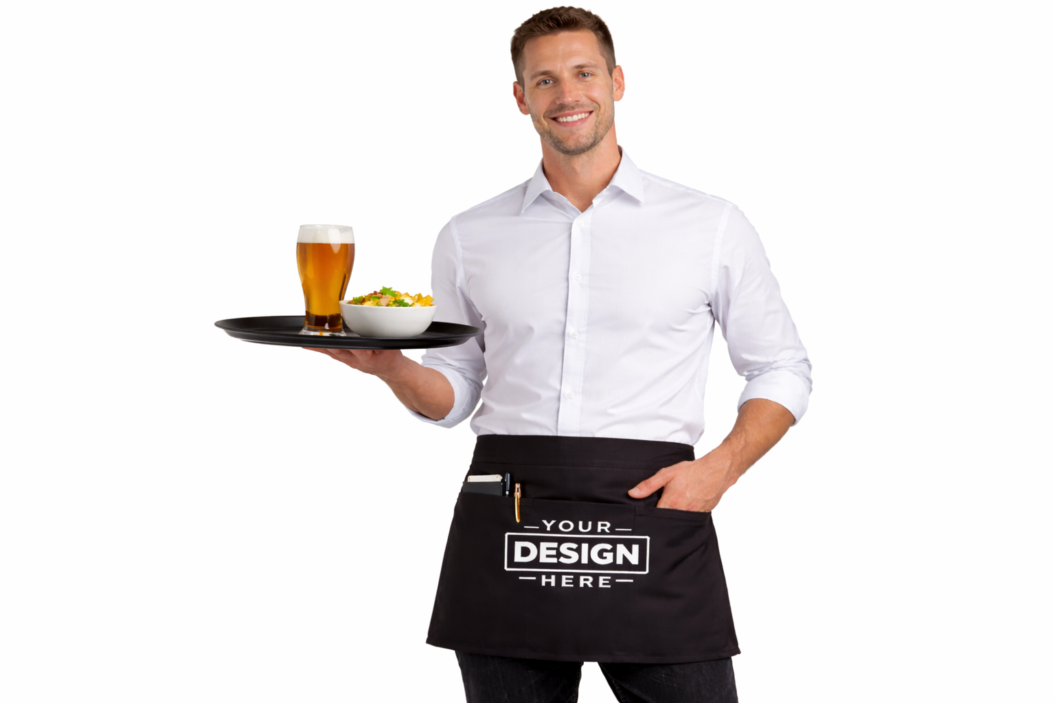 Furthermore, we've made it simple to select the aprons you want. So all of our aprons can be customized with a unique message or artwork that reflects your brand. And you can design your own Waist aprons stress-free! So find up to 10,000 stock designs to create your professional aprons. And choose the apparel that fits your needs, and we'll deliver it to your door. AndwWith over 35,000 satisfied customers, you can expect to get your bistro aprons promptly.