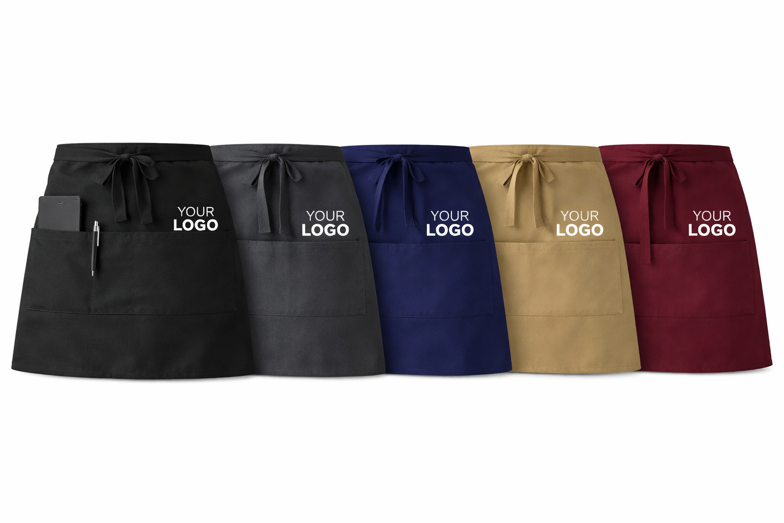 Custom Waist Aprons give businesses a simple and useful option for uniforms, events, and daily work. These aprons are strong, easy to wear, and keep tools close while showing your logo clearly.
