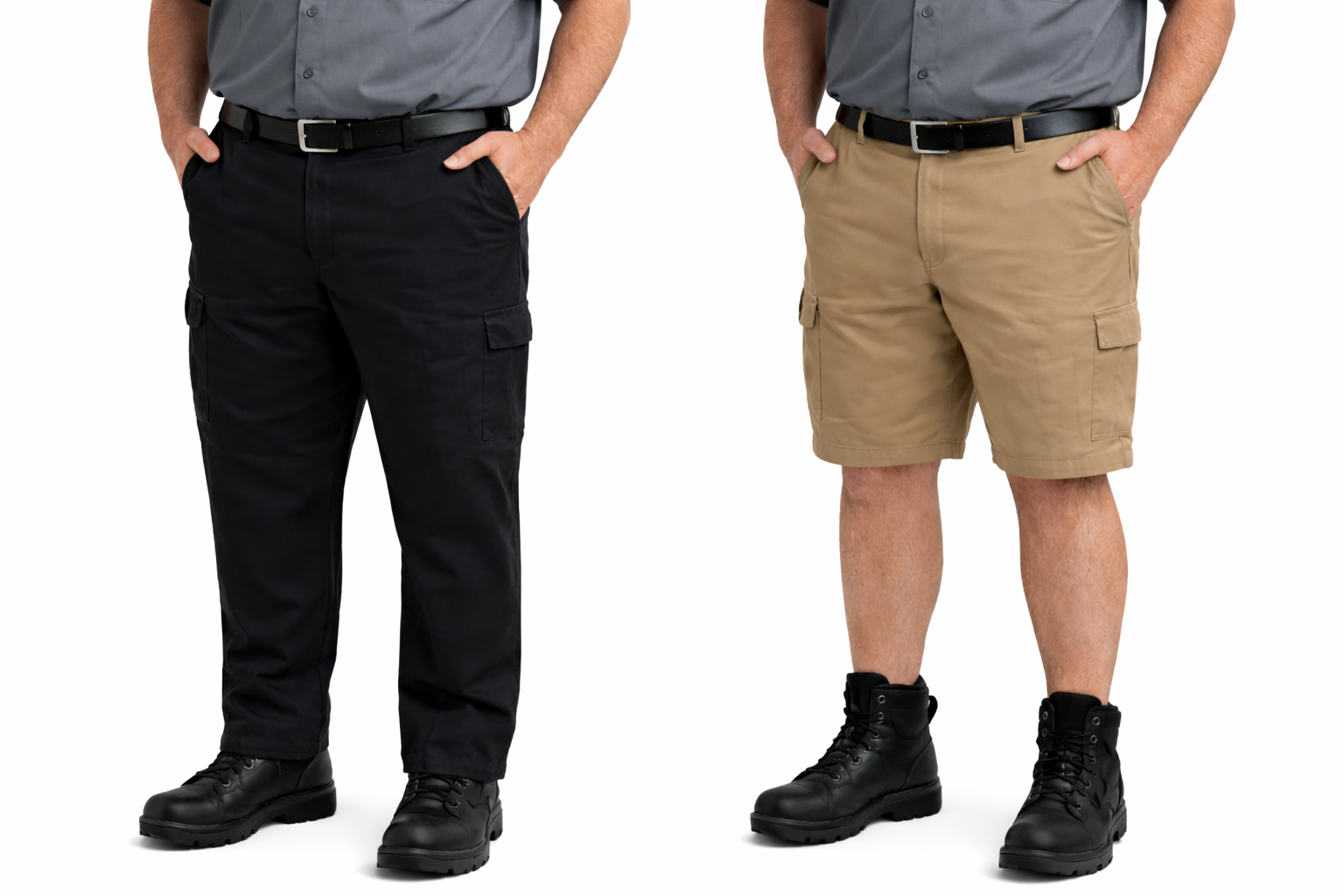 Our men’s work pants and shorts with embroidered or printed logo offer rugged, functional bottoms built for performance and everyday wear. Available in flat-front styles, elastic-insert designs, industrial work pants, and breathable shorts, these custom bottoms can be personalized with your logo for a cohesive, professional look. Ideal for construction crews, service teams, and corporate workwear programs, we offer bulk pricing, fast turnaround, and durable options that stand up to the job. See our selection below: